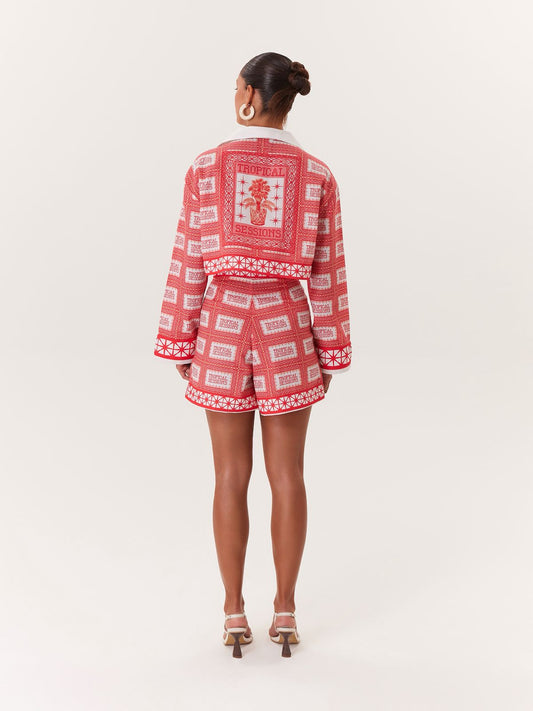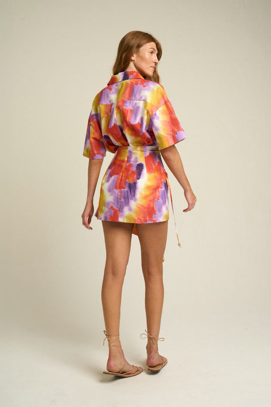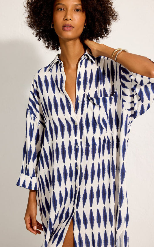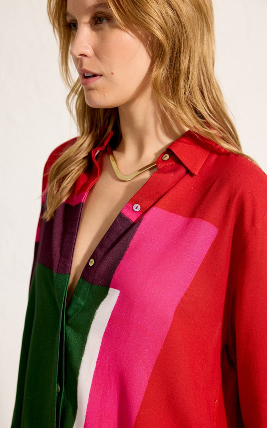 CAMISA MANGA LARGA TROPICAL CAFÉ CON AZUL