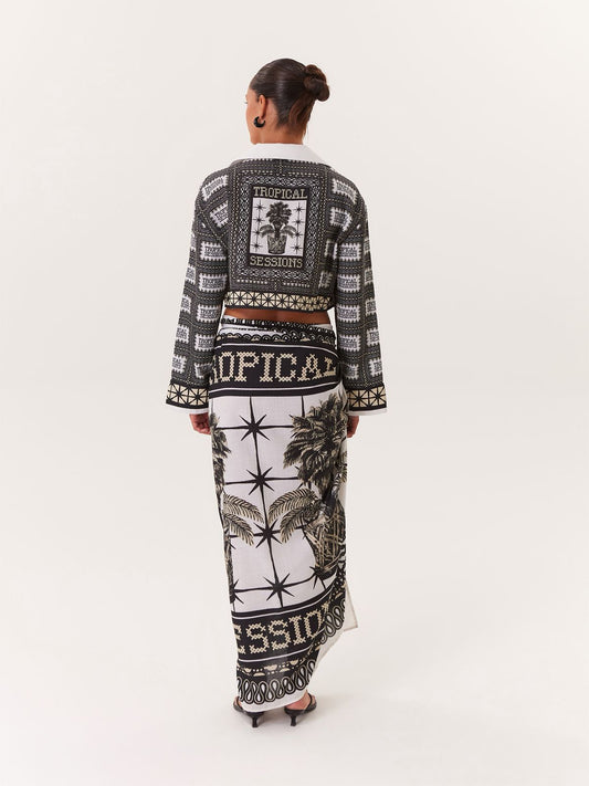 CAMISA MANGA LARGA TROPICAL NEGRA