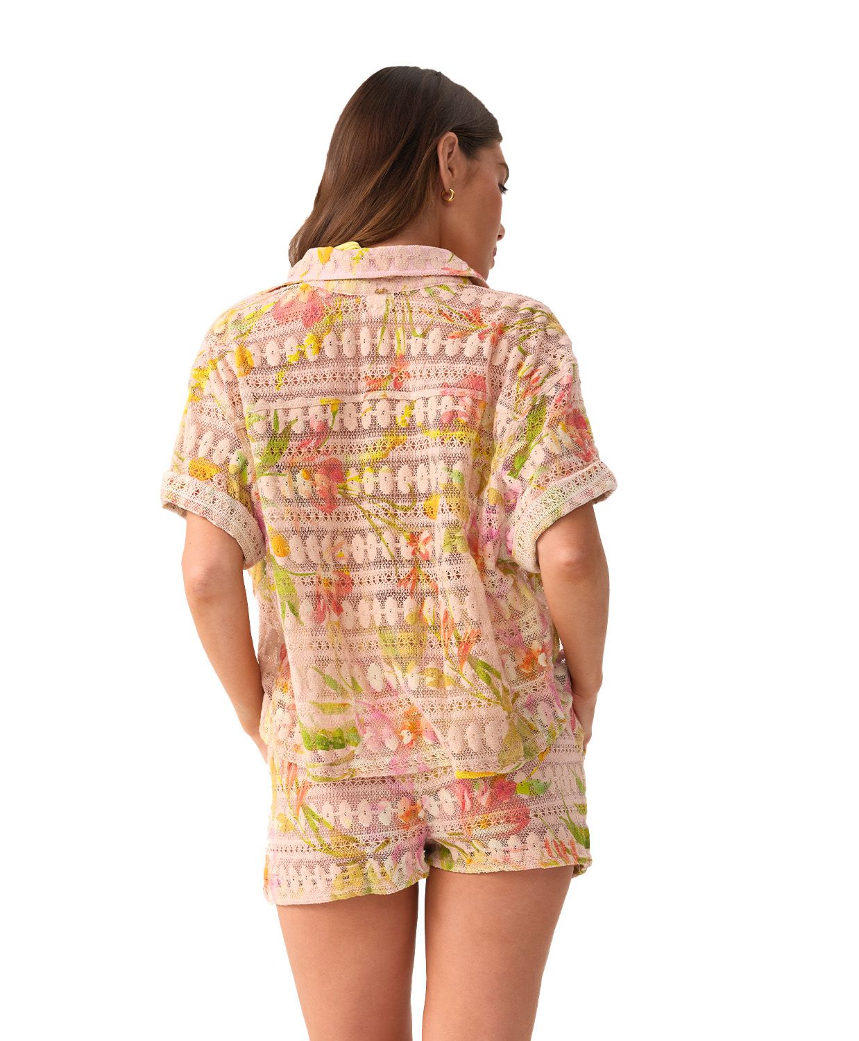 SET ROSA DE ENCAJE ESTAMPADO CON FLORES